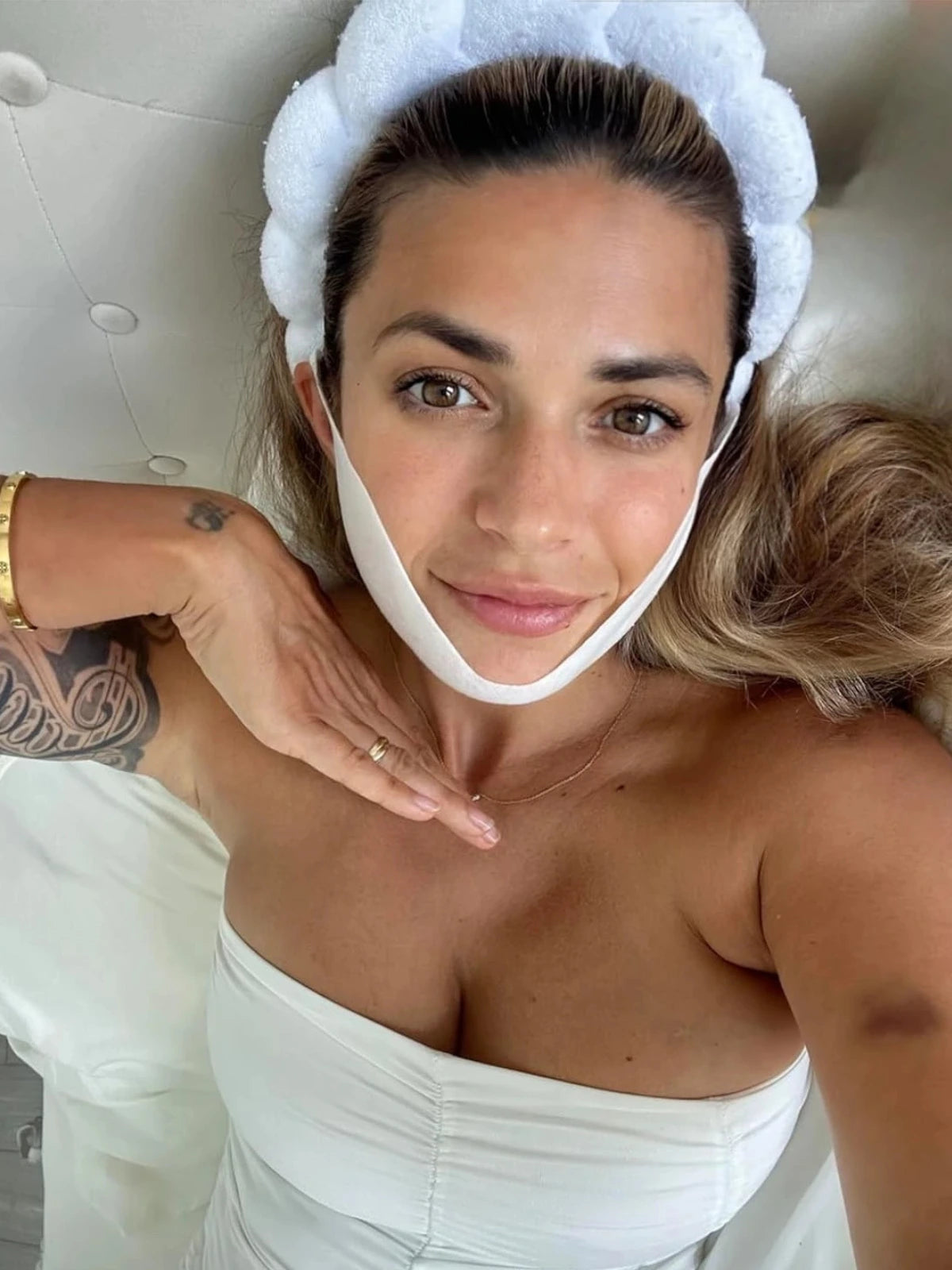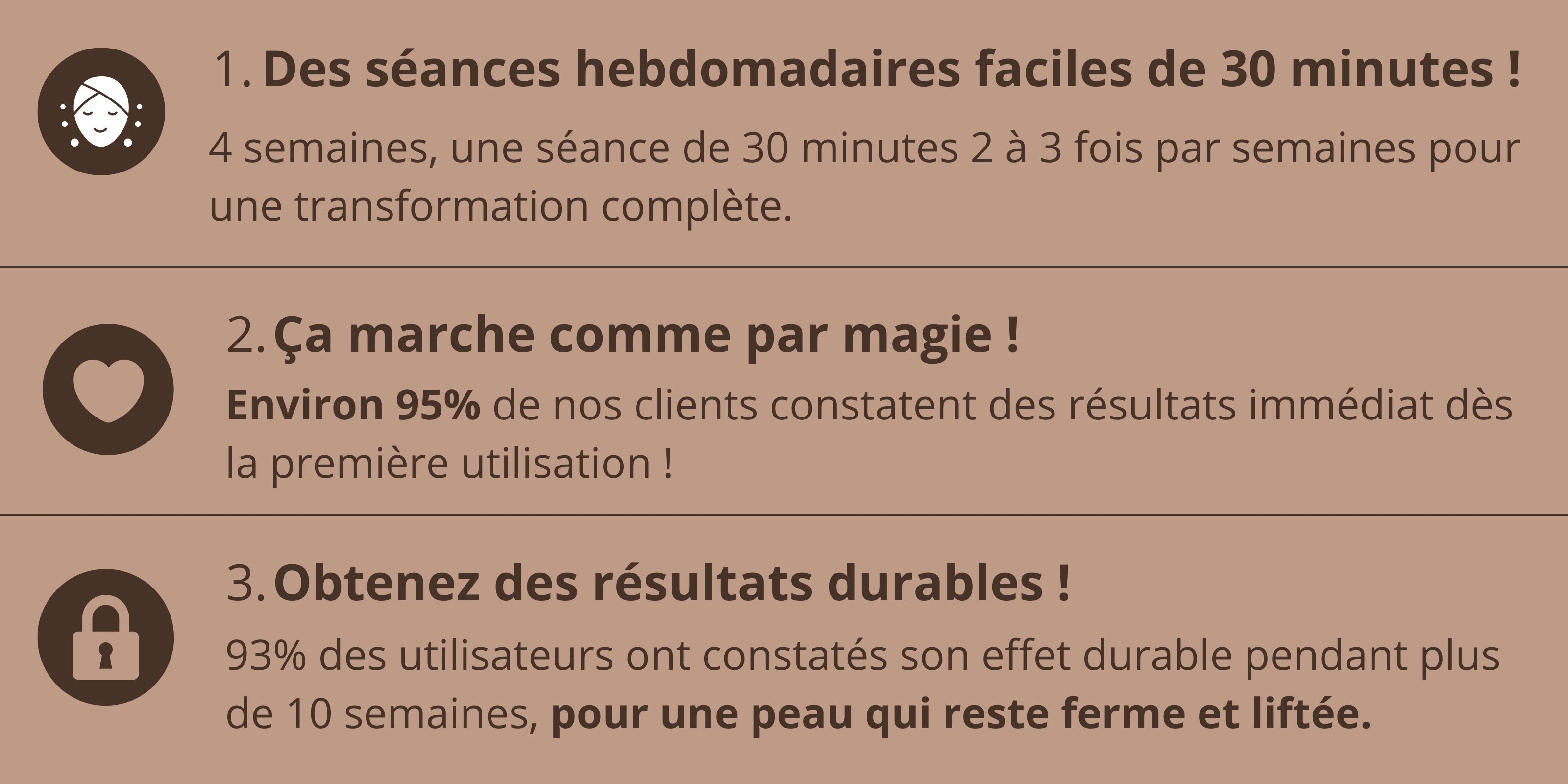 3 utilisations, résultats visibles. 30 min pendant mon rangement, doux, confortable, peau fraîche et douce. Ma ligne de mâchoire paraît plus nette !