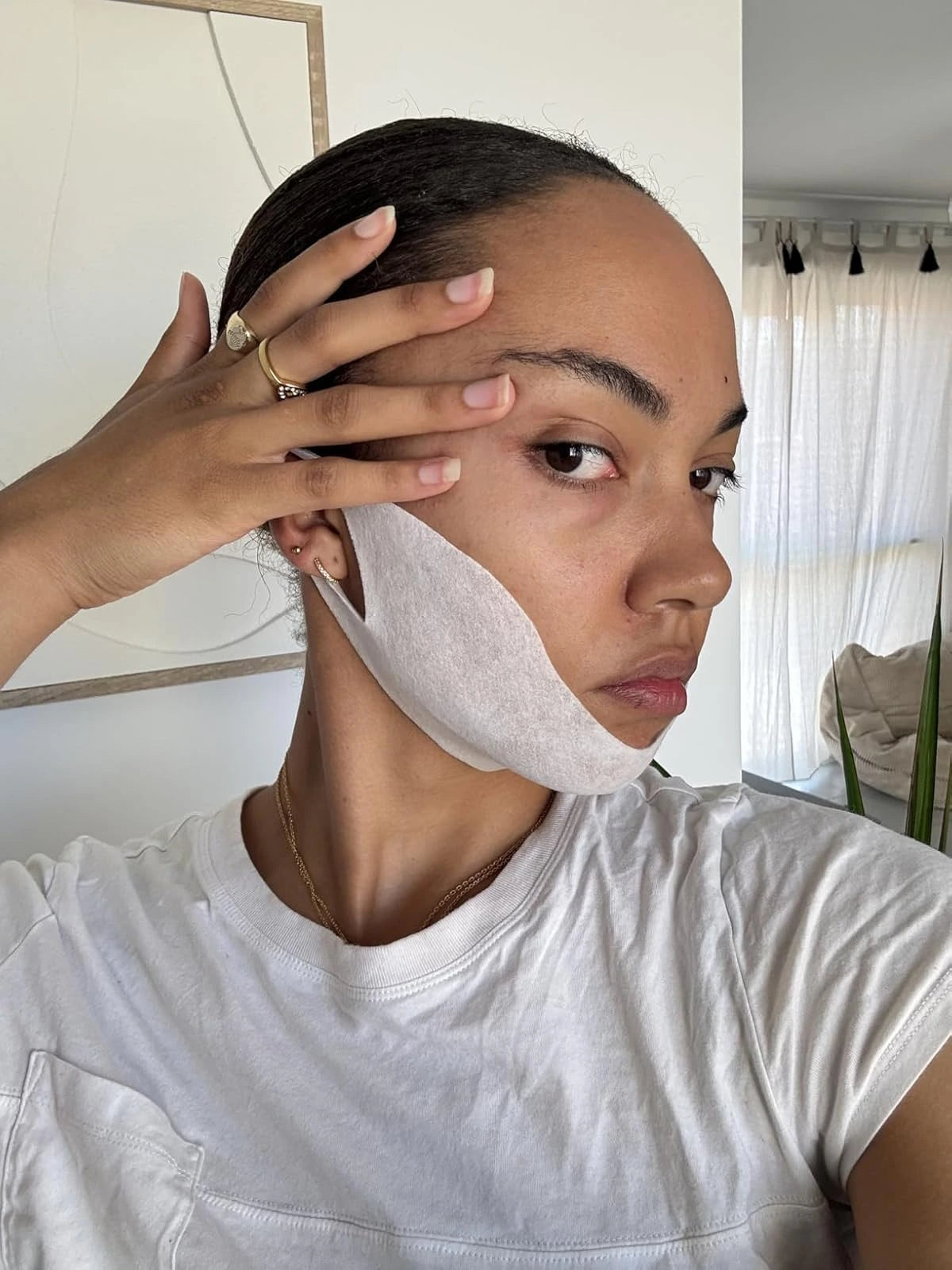 Frais, simple à appliquer et bien fixé aux oreilles, on vit sa vie pendant la pose et l’effet liftant est visible tout de suite. À suivre sur le long terme, mais validé.